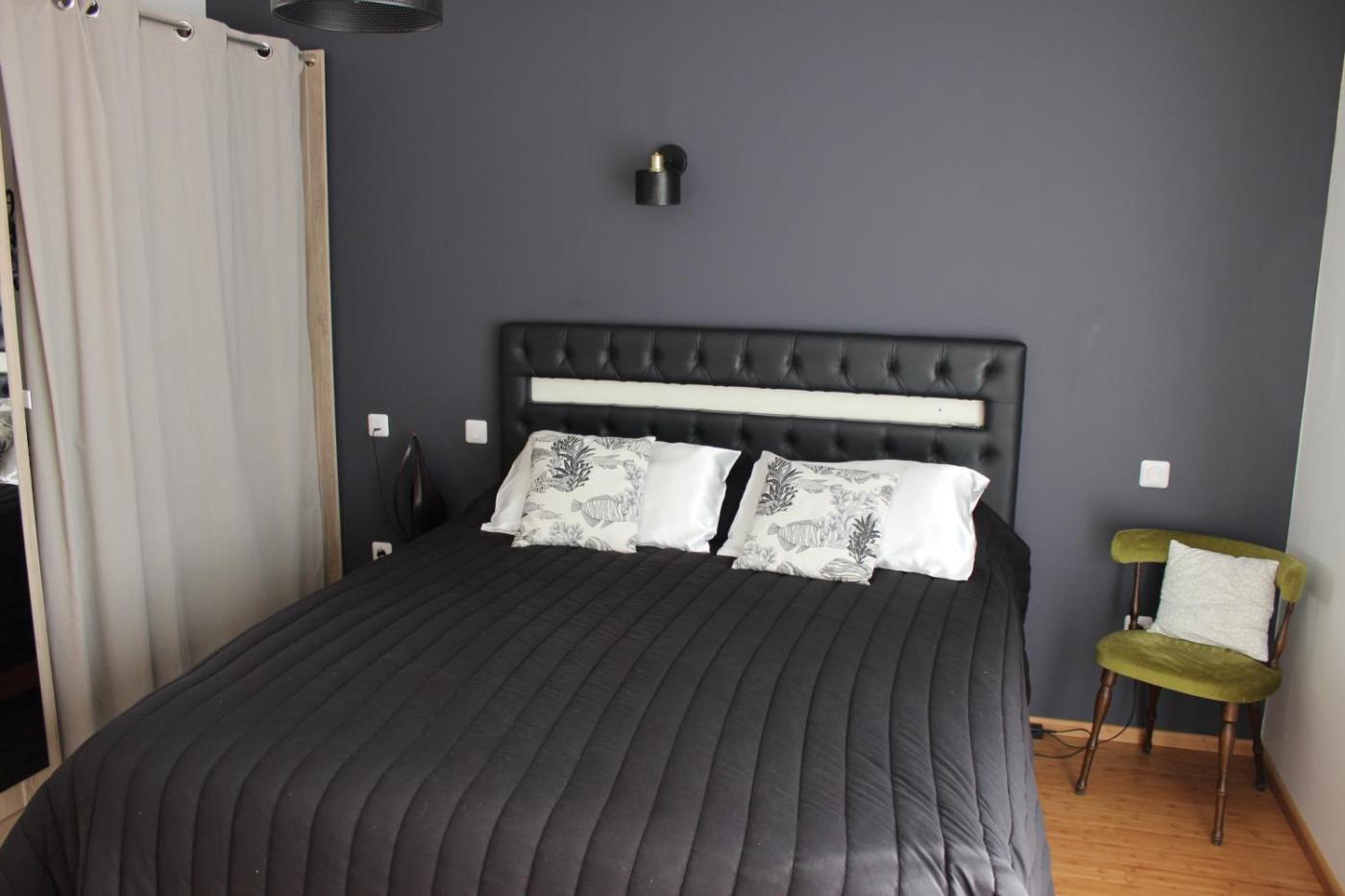 Double Room with Private Bathroom. This double room has a kitchenware, private entrance and garden view. The bedroom is located on the ground floor, private bathroom with wc. Towels and sheets provided, Wi-Fi In a new house, a quiet street. The sea at 850 m, access by the forest on foot, by bike or by car. Pets are prohibited there. We offer breakfast, €7 per person, between 8.45 am and 9.45 am, on request the day before. No food in the room