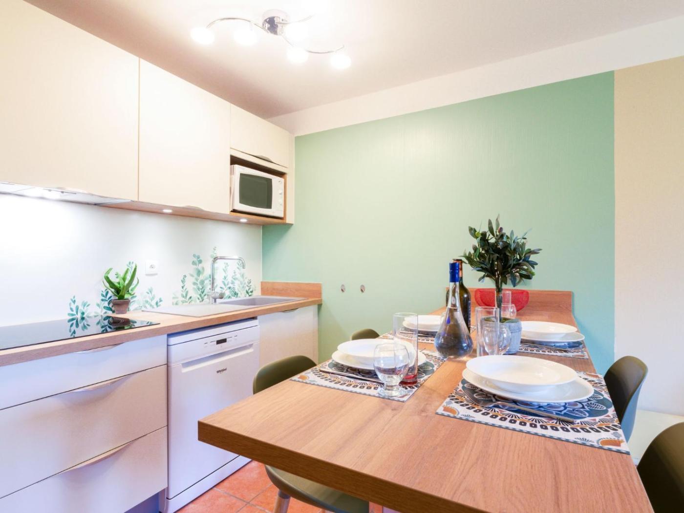 This apartment includes 1 bedroom, a living room and a TV, an equipped kitchen with a dining area, and 2 bathrooms with a shower and a washing machine.